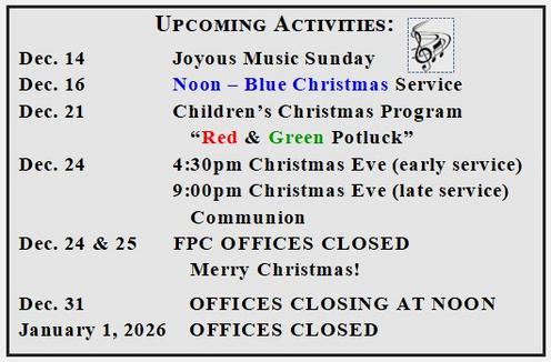 CHECK OUR CALENDAR FOR UPCOMING IMPORTANT DATES/SERVICES
